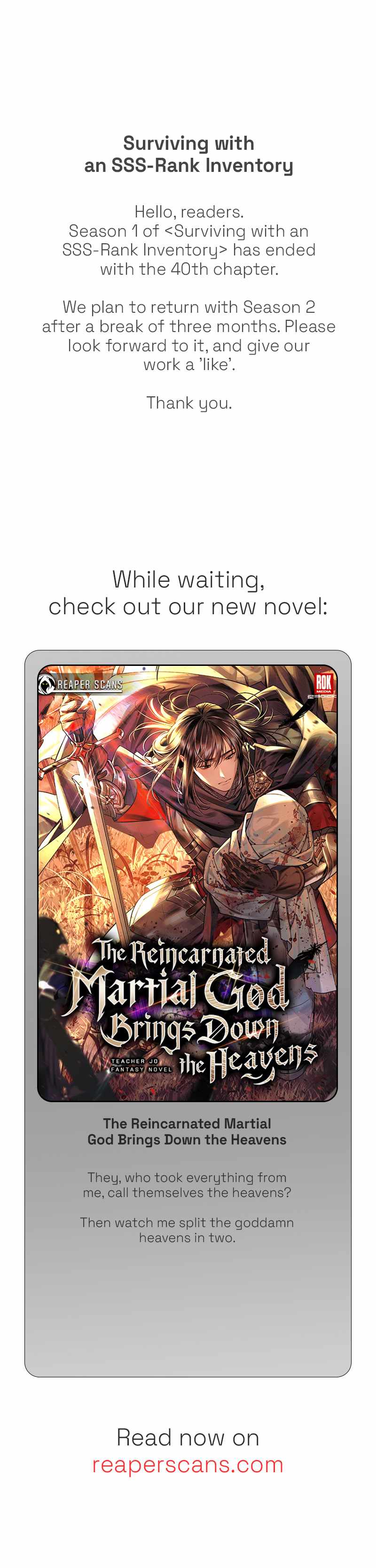 Surviving with an SSS-Rank Inventory Chapter 40-5-eng-li Prev Chapter: 69-eng-li Chapter: 68-eng-li Chapter: 67-eng-li Chapter: 66-eng-li Chapter: 65-eng-li Chapter: 64-eng-li Chapter: 63-eng-li Chapter: 62-eng-li Chapter: 61-eng-li Chapter: 60-eng-li Chapter: 59-eng-li Chapter: 58-eng-li Chapter: 57-eng-li Chapter: 56-eng-li Chapter: 55-eng-li Chapter: 54-eng-li Chapter: 53-eng-li Chapter: 52-eng-li Chapter: 51-eng-li Chapter: 50-eng-li Chapter: 49-eng-li Chapter: 47-5-eng-li Chapter: 47-eng-li Chapter: 46-eng-li Chapter: 45-eng-li Chapter: 44-eng-li Chapter: 43-eng-li Chapter: 42-eng-li Chapter: 41-eng-li Chapter: 40-5-eng-li Chapter: 40-eng-li Chapter: 39-eng-li Chapter: 38-eng-li Chapter: 37-eng-li Chapter: 36-eng-li Chapter: 35-eng-li Chapter: 34-eng-li Chapter: 33-eng-li Chapter: 32-eng-li Chapter: 31-eng-li Chapter: 30-eng-li Chapter: 29-eng-li Chapter: 28-eng-li Chapter: 27-eng-li Chapter: 26-eng-li Chapter: 25-eng-li Chapter: 24-eng-li Chapter: 23-eng-li Chapter: 22-eng-li Chapter: 21-eng-li Chapter: 20-eng-li Chapter: 19-eng-li Chapter: 18-eng-li Chapter: 17-eng-li Chapter: 16-eng-li Chapter: 15-eng-li Chapter: 14-eng-li Chapter: 13-eng-li Chapter: 12-eng-li Chapter: 11-eng-li Chapter: 10-eng-li Chapter: 9-eng-li Chapter: 8-eng-li Chapter: 7-eng-li Chapter: 6-eng-li Chapter: 5-eng-li Chapter: 4-eng-li Chapter: 3-eng-li Chapter: 2-eng-li Chapter: 1-eng-li Next chevron_left Prev Chapter: 69-eng-li Chapter: 68-eng-li Chapter: 67-eng-li Chapter: 66-eng-li Chapter: 65-eng-li Chapter: 64-eng-li Chapter: 63-eng-li Chapter: 62-eng-li Chapter: 61-eng-li Chapter: 60-eng-li Chapter: 59-eng-li Chapter: 58-eng-li Chapter: 57-eng-li Chapter: 56-eng-li Chapter: 55-eng-li Chapter: 54-eng-li Chapter: 53-eng-li Chapter: 52-eng-li Chapter: 51-eng-li Chapter: 50-eng-li Chapter: 49-eng-li Chapter: 47-5-eng-li Chapter: 47-eng-li Chapter: 46-eng-li Chapter: 45-eng-li Chapter: 44-eng-li Chapter: 43-eng-li Chapter: 42-eng-li Chapter: 41-eng-li Chapter: 40-5-eng-li Chapter: 40-eng-li Chapter: 39-eng-li Chapter: 38-eng-li Chapter: 37-eng-li Chapter: 36-eng-li Chapter: 35-eng-li Chapter: 34-eng-li Chapter: 33-eng-li Chapter: 32-eng-li Chapter: 31-eng-li Chapter: 30-eng-li Chapter: 29-eng-li Chapter: 28-eng-li Chapter: 27-eng-li Chapter: 26-eng-li Chapter: 25-eng-li Chapter: 24-eng-li Chapter: 23-eng-li Chapter: 22-eng-li Chapter: 21-eng-li Chapter: 20-eng-li Chapter: 19-eng-li Chapter: 18-eng-li Chapter: 17-eng-li Chapter: 16-eng-li Chapter: 15-eng-li Chapter: 14-eng-li Chapter: 13-eng-li Chapter: 12-eng-li Chapter: 11-eng-li Chapter: 10-eng-li Chapter: 9-eng-li Chapter: 8-eng-li Chapter: 7-eng-li Chapter: 6-eng-li Chapter: 5-eng-li Chapter: 4-eng-li Chapter: 3-eng-li Chapter: 2-eng-li Chapter: 1-eng-li Next chevron_right Mark Marked Marked Comments Comments Post Comment Contains spoiler: LOAD MORE Something Wrong! Something Wrong! close Close Something Wrong! Something Wrong!