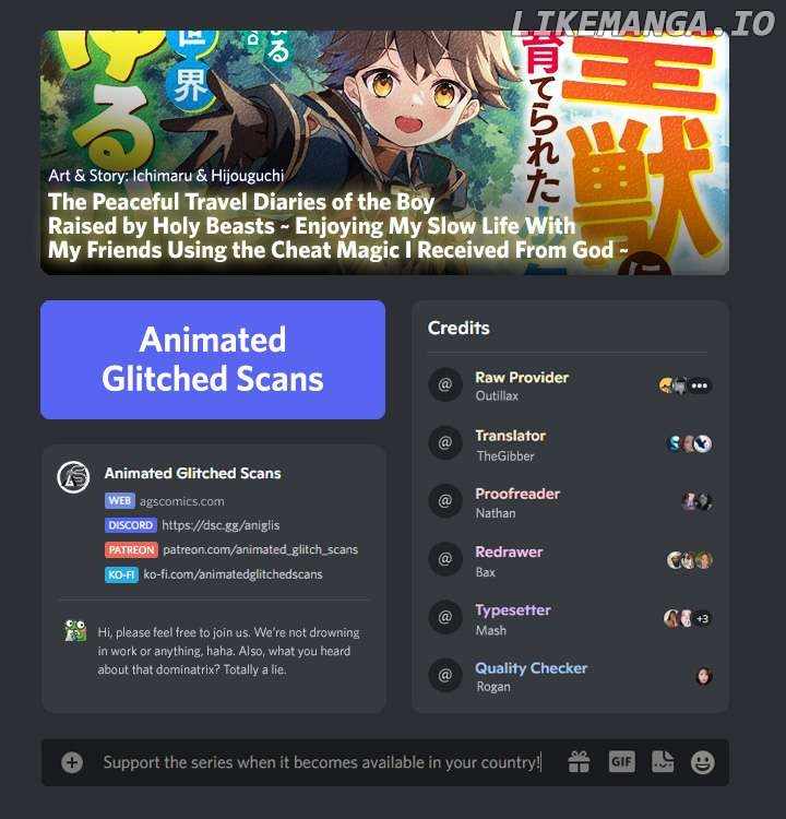 The Peaceful Travel Diaries of the Boy Raised By Holy Beasts ~Enjoying My Slow Life With My Friends Using the Cheat Magic I Received From God~ Chapter 1-1-eng-li Prev Chapter: 1-2-eng-li Chapter: 1-1-eng-li Next chevron_left Prev Chapter: 1-2-eng-li Chapter: 1-1-eng-li Next chevron_right Mark Marked Marked Comments Comments Post Comment Contains spoiler: LOAD MORE Something Wrong! Something Wrong! close Close Something Wrong! Something Wrong!